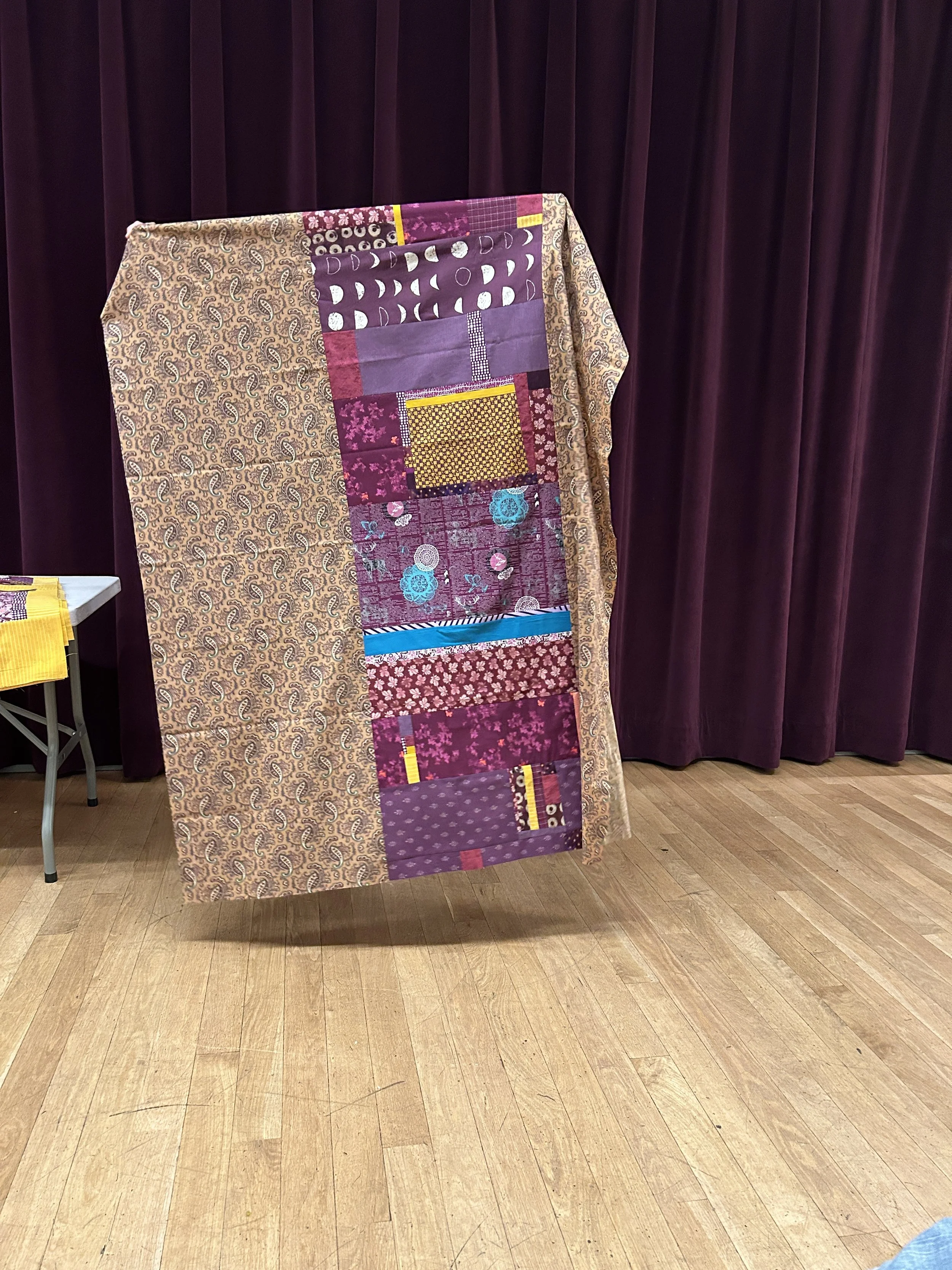 Cynthia then wrapped the show and tell with a stunning scrappy yellow and purple quilt with a scrappy back